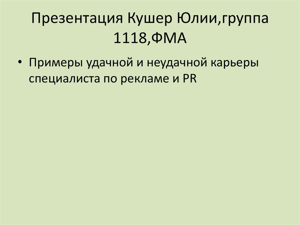 • Примеры удачной и неудачной карьерыспециалиста по рекламе и PR