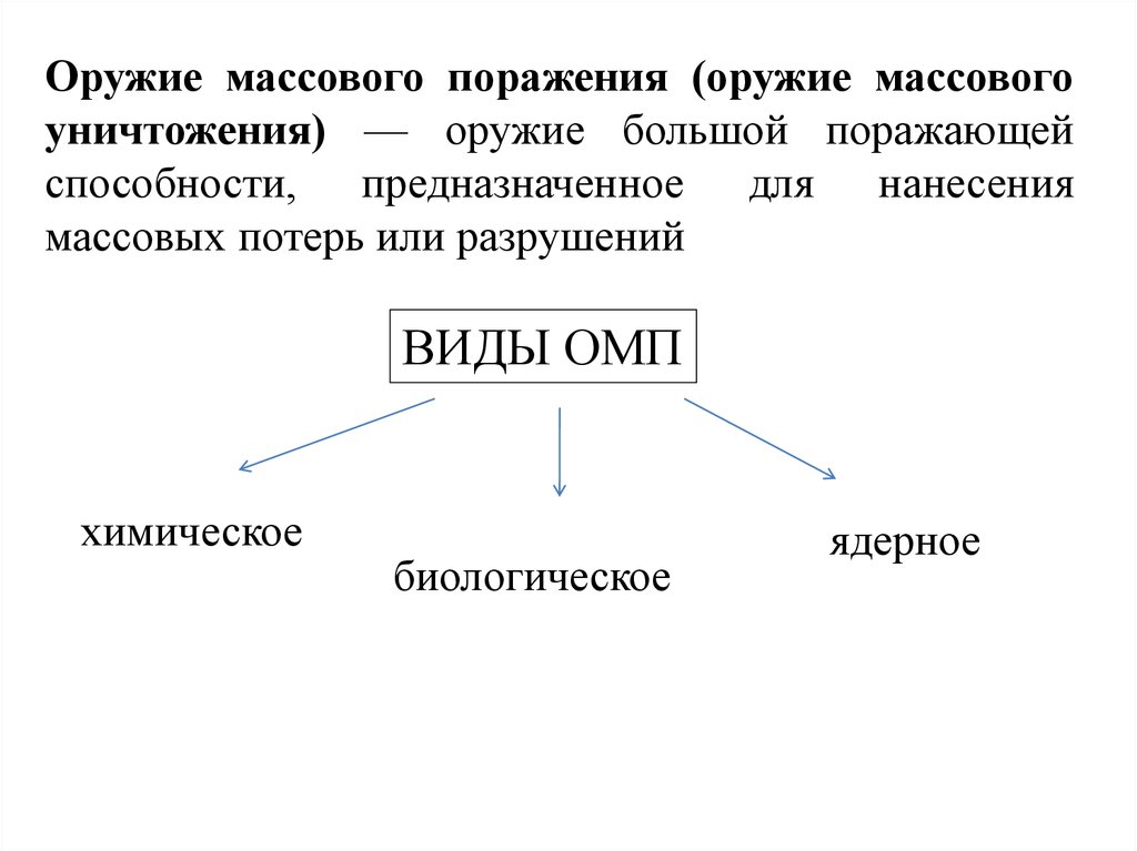 Оружие массового поражения (оружие массовогоуничтожения) — оружие большой поражающей