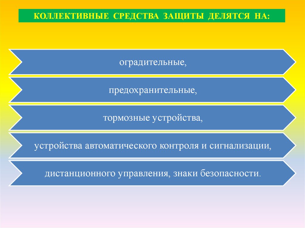 КОЛЛЕКТИВНЫЕ СРЕДСТВА ЗАЩИТЫ ДЕЛЯТСЯ НА:оградительные,