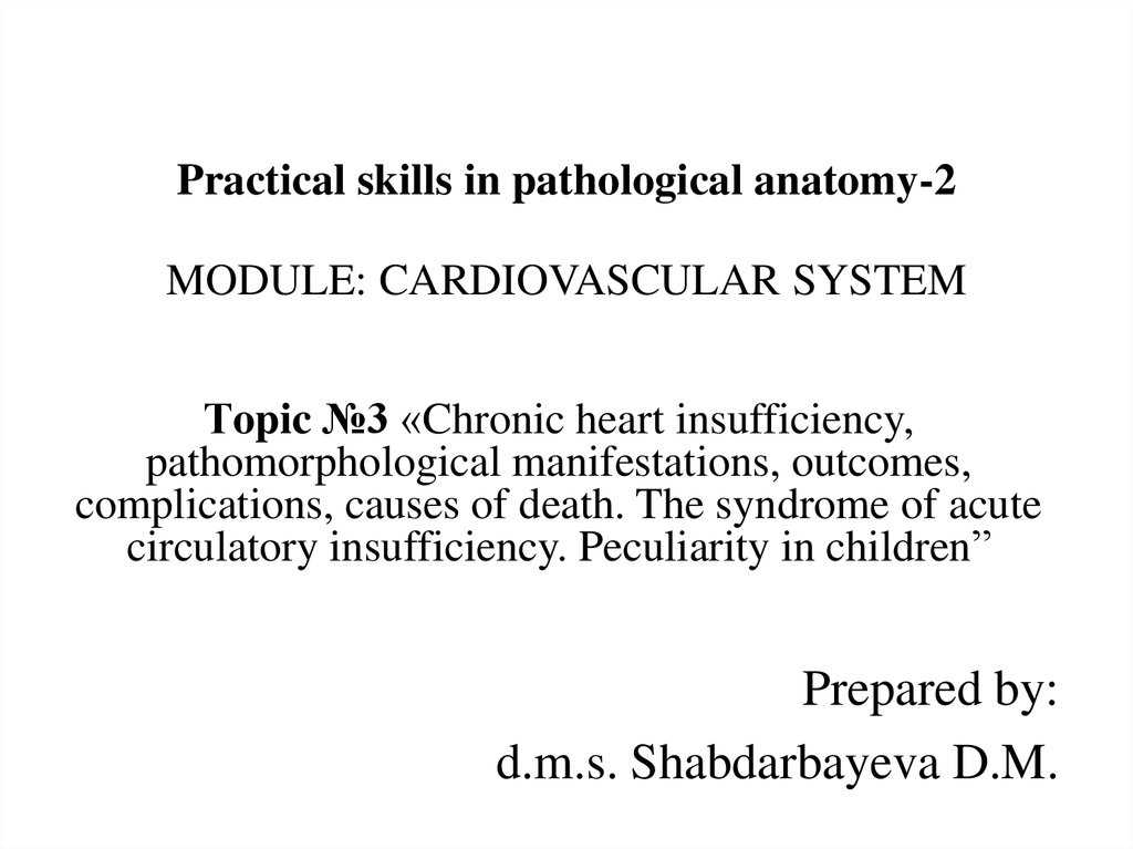 Тopic №3 «Chronic heart insufficiency,pathomorphological manifestations, outcomes,