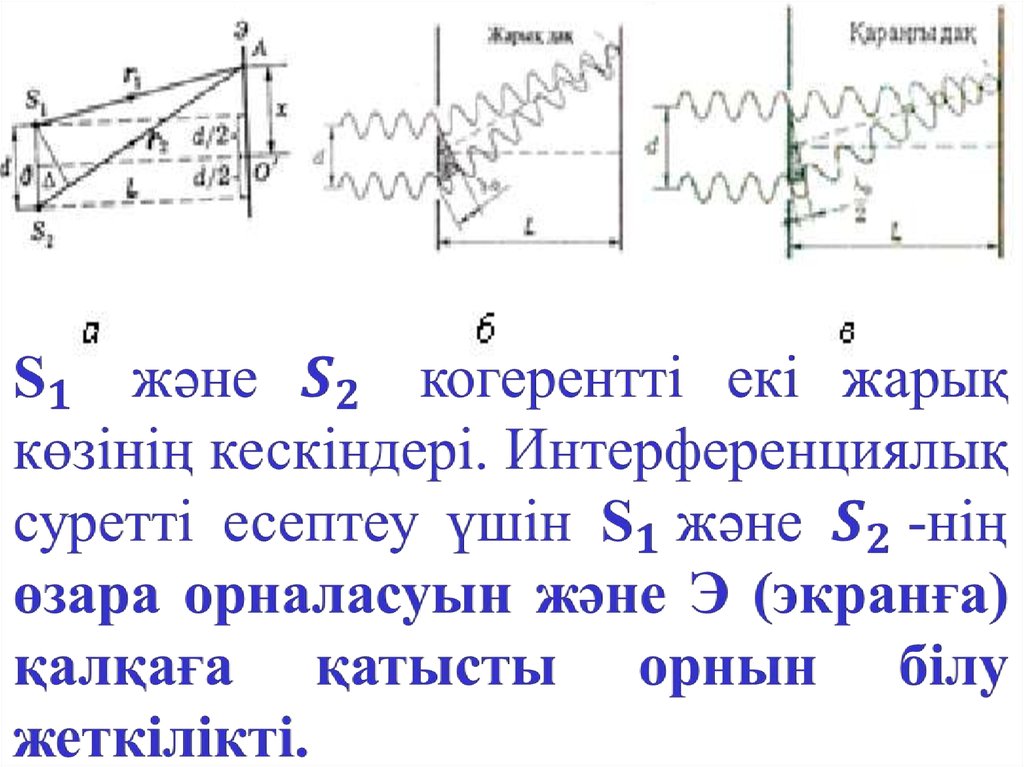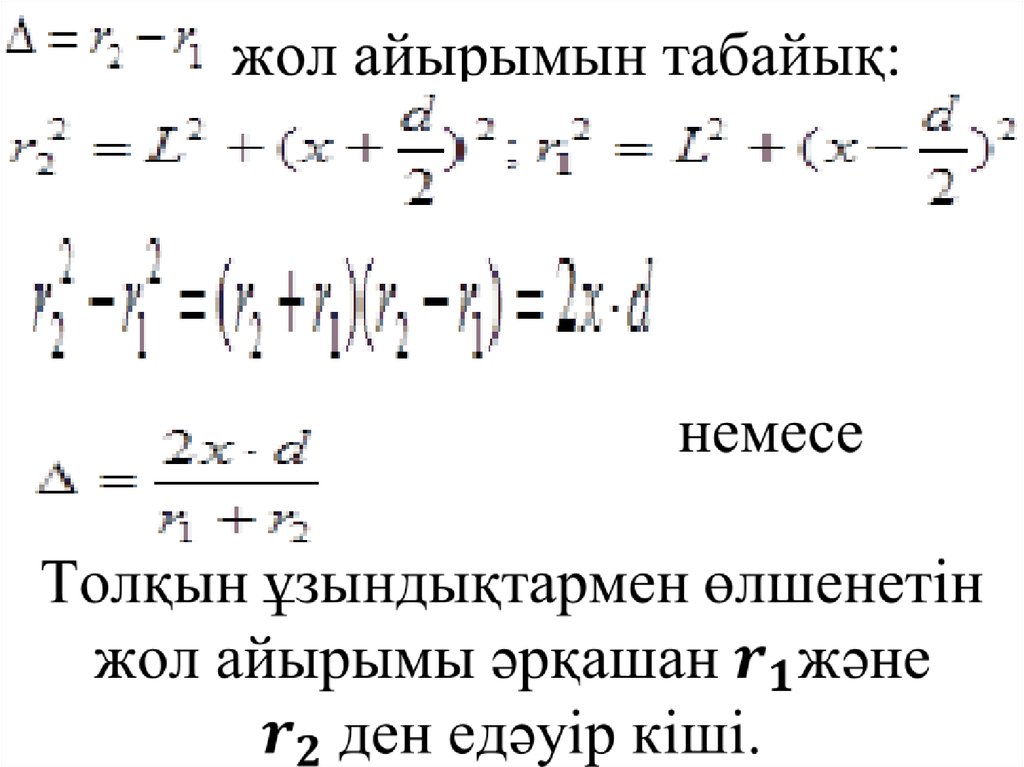 8. Интенсивтіктің максимум мәні Δmax=mλ, ал минимум мәні Δmin=(m+1/2) λ . Қалқада максимумдар мен минимумдардың орны Х мәнімен