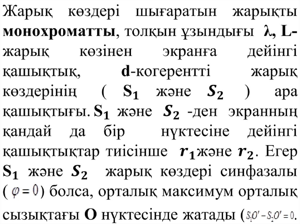 6. Сондықтан деп алуға болады, мұндағы ,сонда (1) Тәжірибенің көпшілігінде экранға дейінгі қашықтық -ге қарағанда көп үлкен,