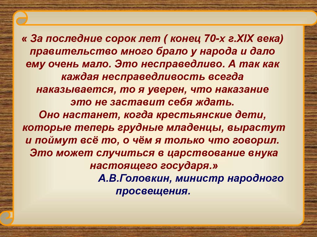 « За последние сорок лет ( конец 70-х г.XIX века)правительство много брало у народа и дало