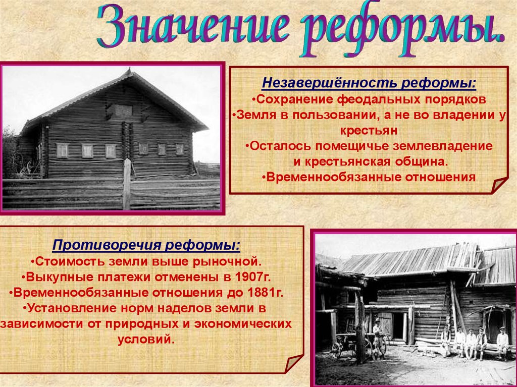 Незавершённость реформы:•Сохранение феодальных порядков