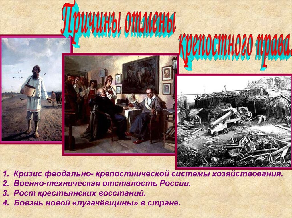 Кризис феодально- крепостнической системы хозяйствования.