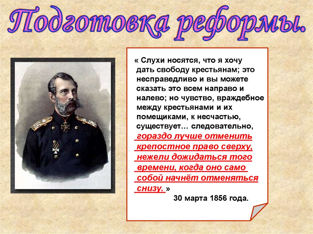 « Слухи носятся, что я хочудать свободу крестьянам; это