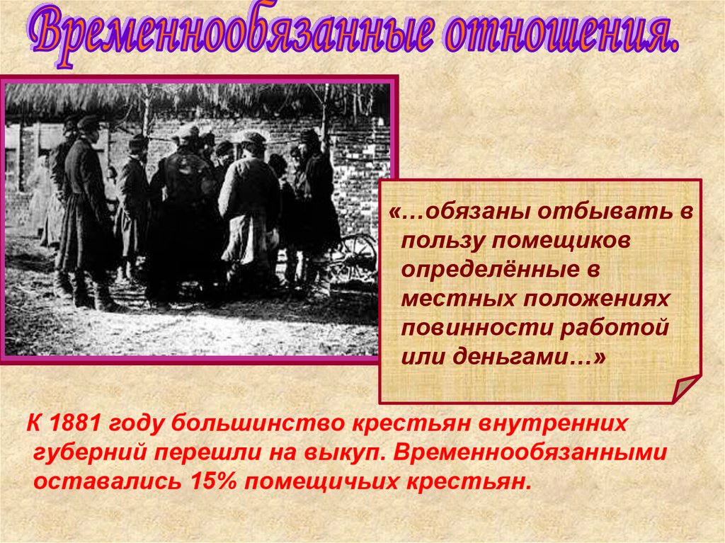 •Временнообязанные отношения до 1881г.