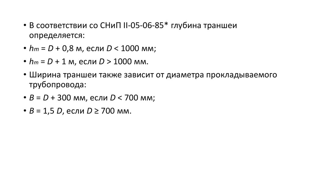• В соответствии со СНиП II-05-06-85* глубина траншеиопределяется: