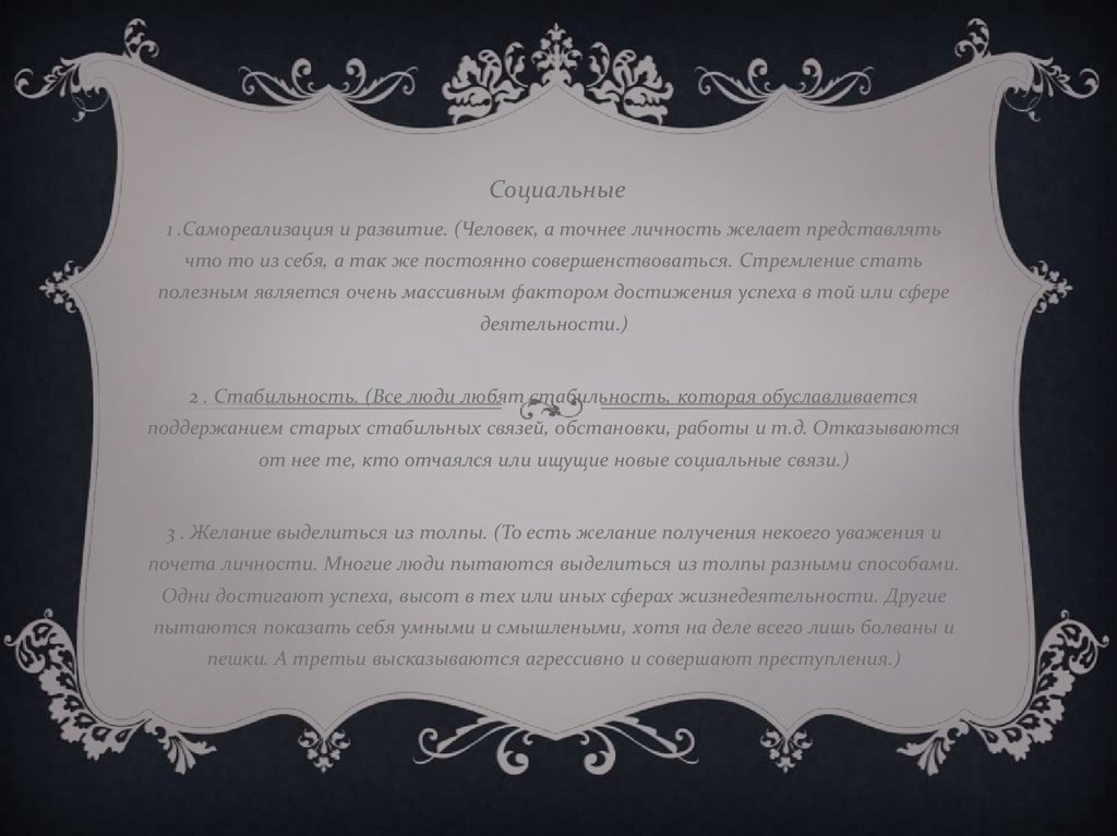Социальные1 .Самореализация и развитие. (Человек, а точнее личность желает представлять