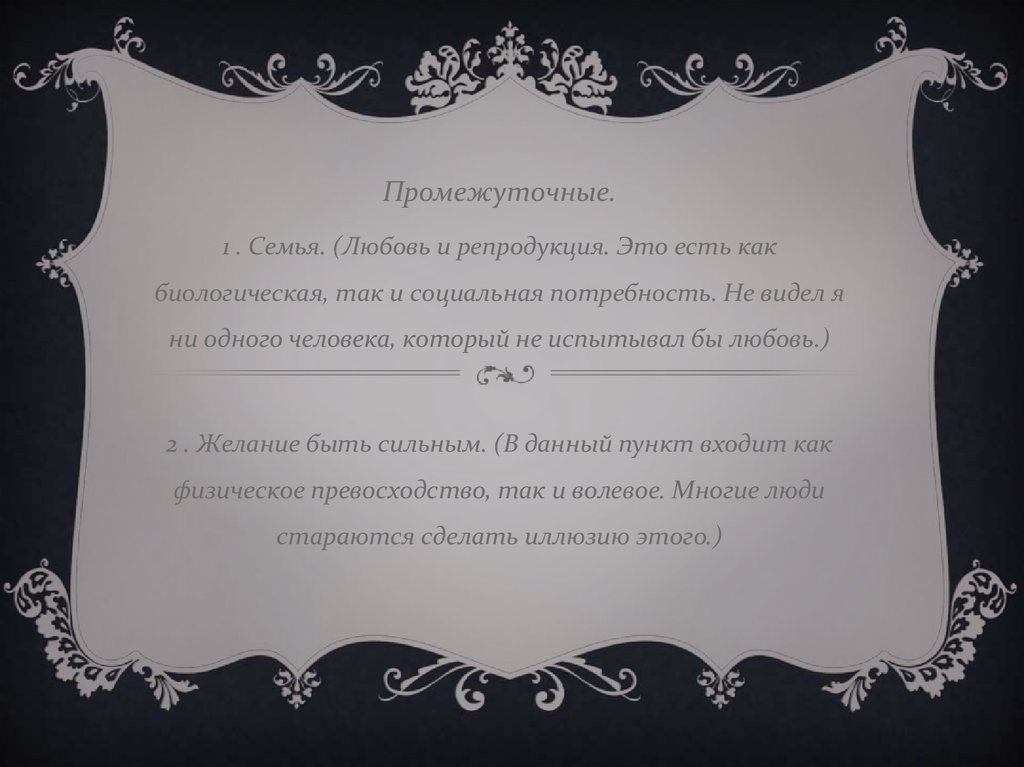 Промежуточные.1 . Семья. (Любовь и репродукция. Это есть как