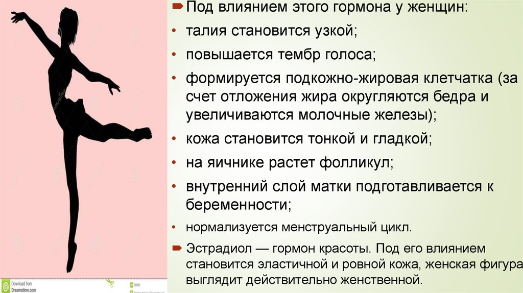 Под влиянием этого гормона у женщин:• талия становится узкой;