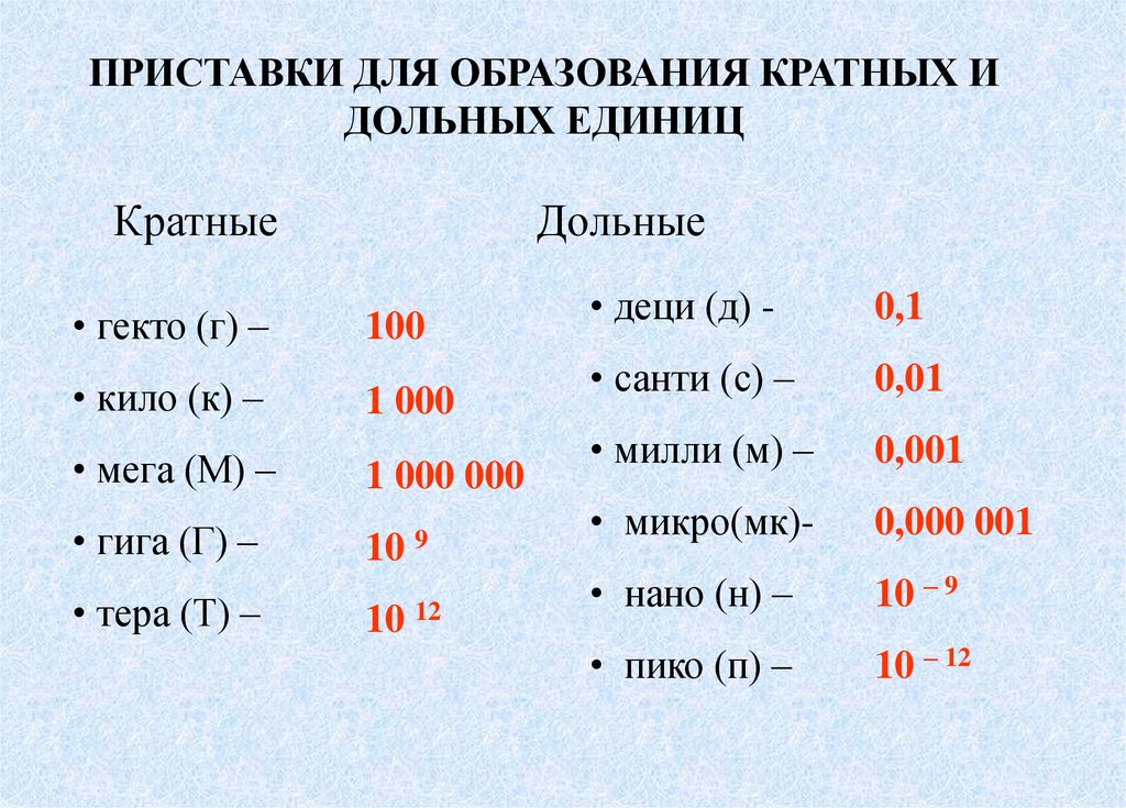 ПРИСТАВКИ ДЛЯ ОБРАЗОВАНИЯ КРАТНЫХ ИДОЛЬНЫХ ЕДИНИЦ