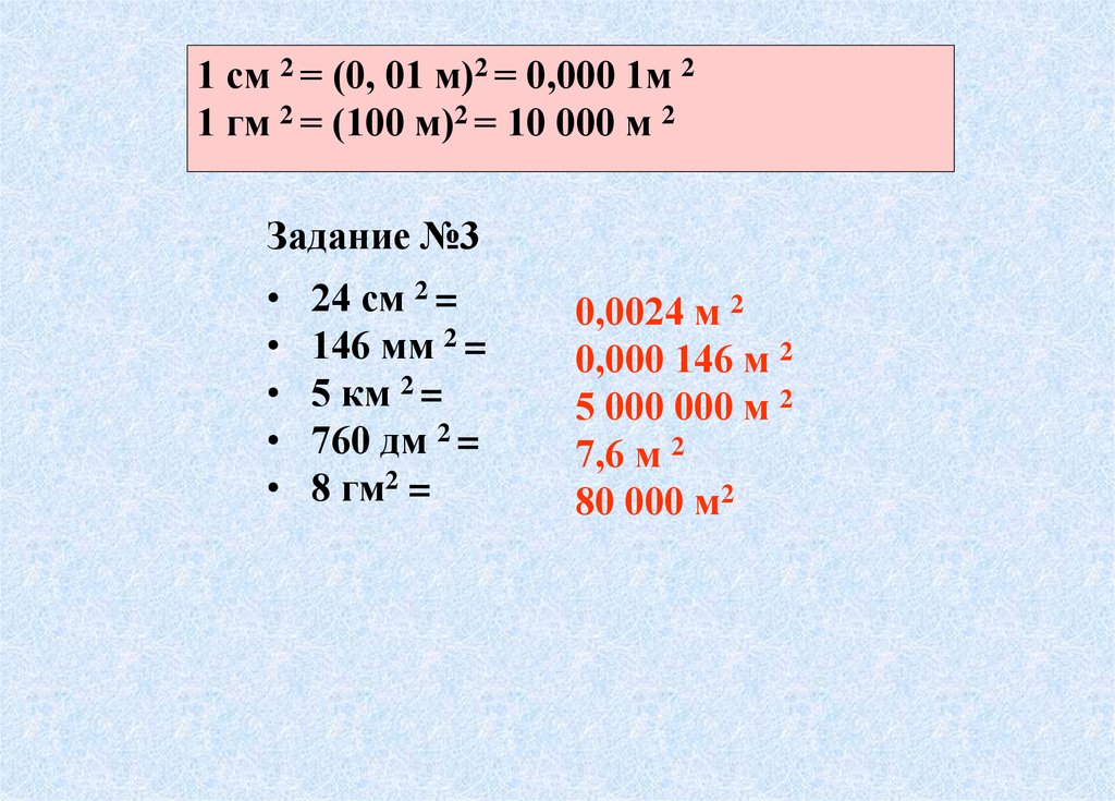 1 см 2 = (0, 01 м)2 = 0,000 1м 21 гм 2 = (100 м)2 = 10 000 м 2