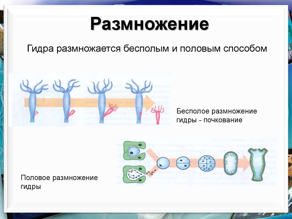 РазмножениеГидра размножается бесполым и половым способом