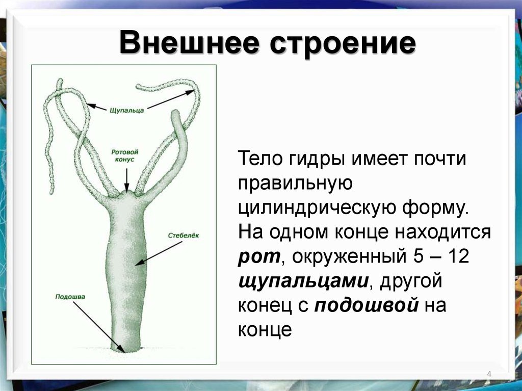 Внешнее строениеТело гидры имеет почти