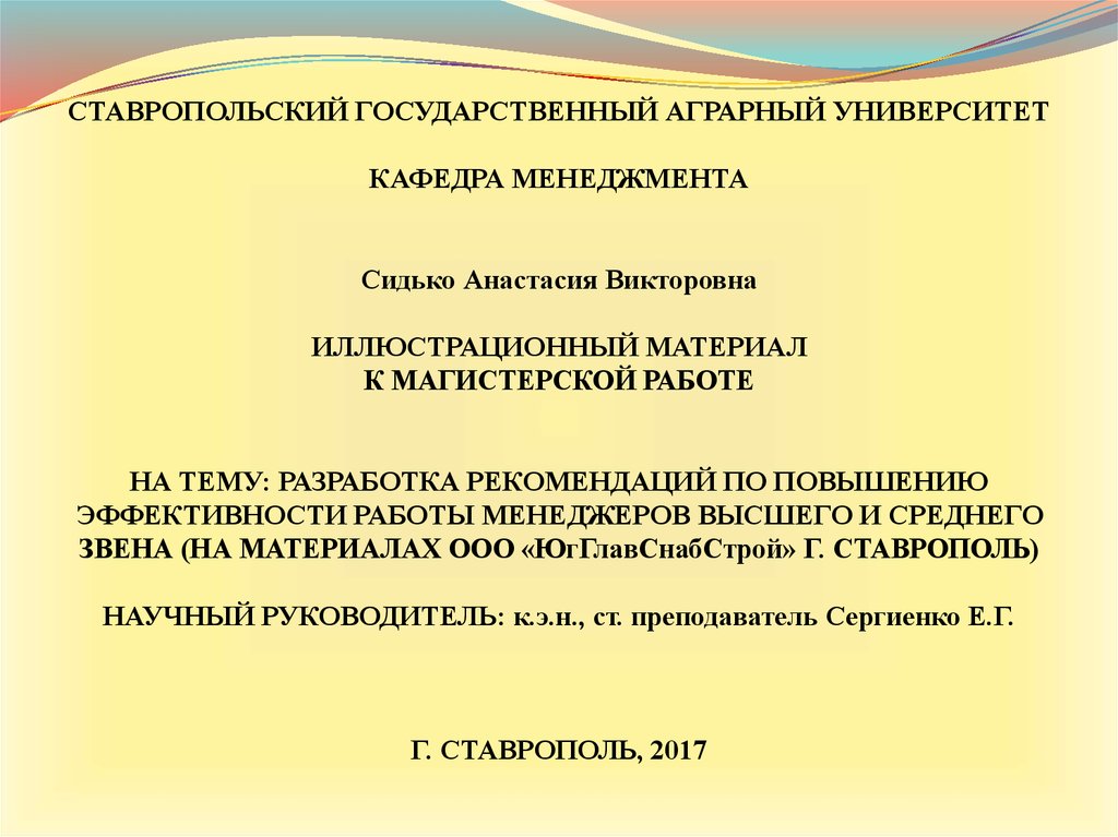 СТАВРОПОЛЬСКИЙ ГОСУДАРСТВЕННЫЙ АГРАРНЫЙ УНИВЕРСИТЕТКАФЕДРА МЕНЕДЖМЕНТА