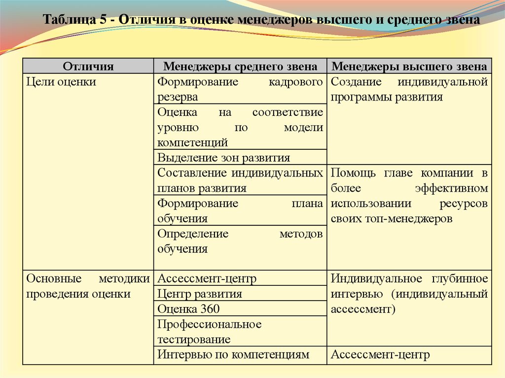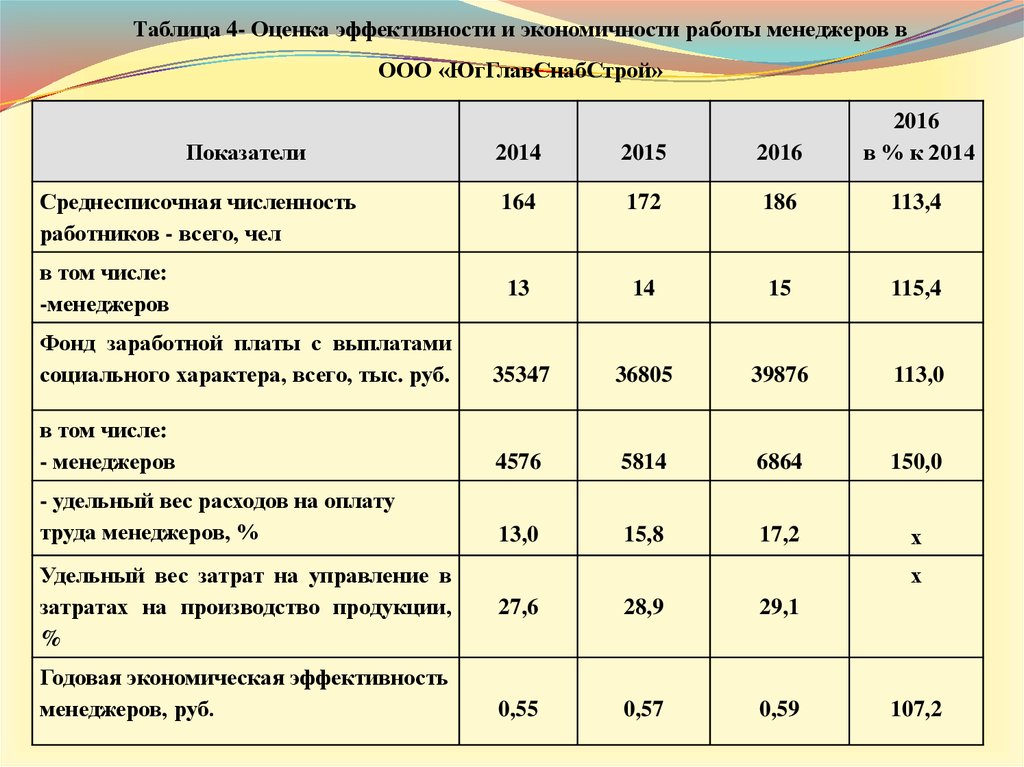 ЭФФЕКТИВНОСТИ РАБОТЫ МЕНЕДЖЕРОВ ВЫСШЕГО И СРЕДНЕГО
