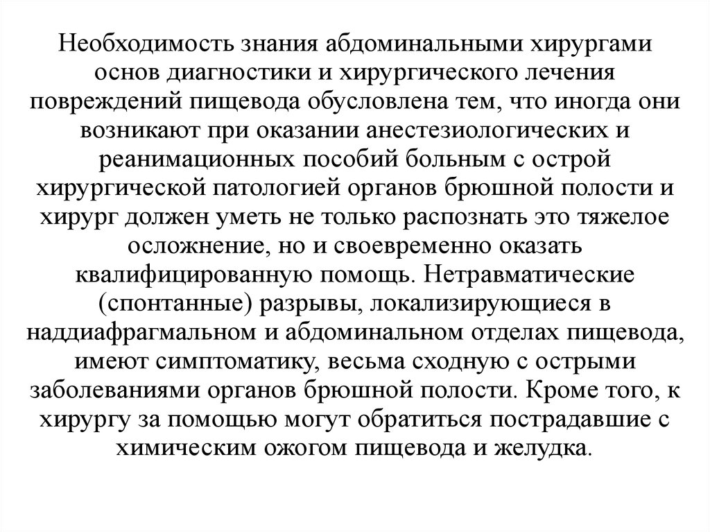 Необходимость знания абдоминальными хирургамиоснов диагностики и хирургического лечения