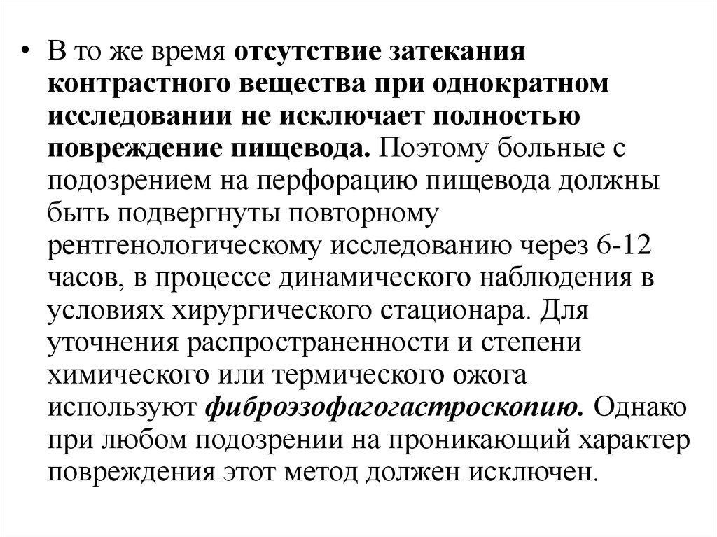 • Прямым признаком разрыва пищеводаявляется затекание контрастного