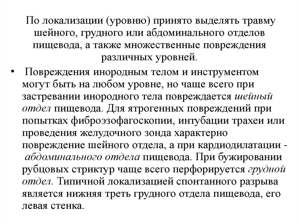отдел пищевода. Для ятрогенных повреждений при