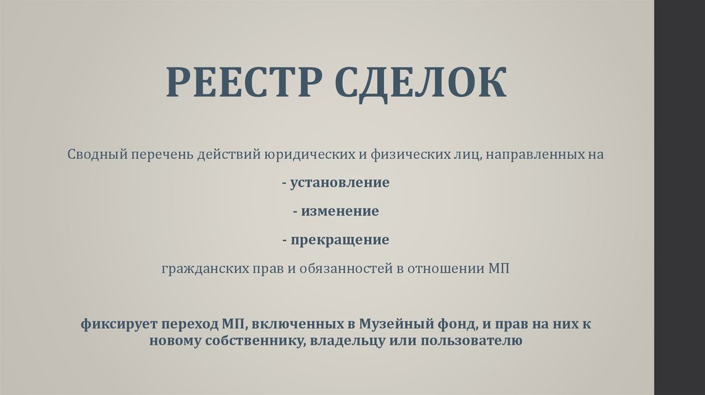 ЗАКРЕПЛЕНИЕ СВЕДЕНИЙ В РЕЕСТРЕ СДЕЛОК – ЗАВЕРШАЮЩИЙ ЭТАП ПЕРЕДАЧИ ПРАВ НАМУЗЕЙНЫЕ ПРЕДМЕТЫ