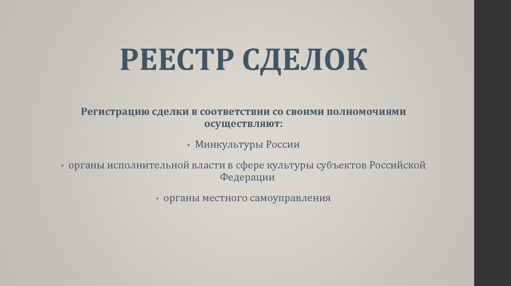 РЕЕСТР СДЕЛОКРегистрацию сделки в соответствии со своими полномочиями