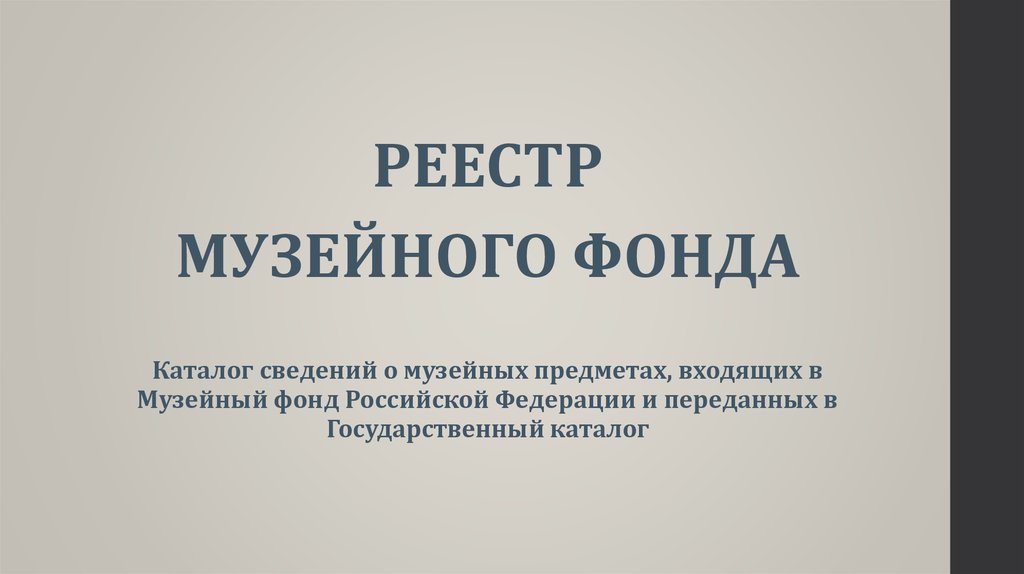 РЕЕСТР МУЗЕЙНОГО ФОНДА