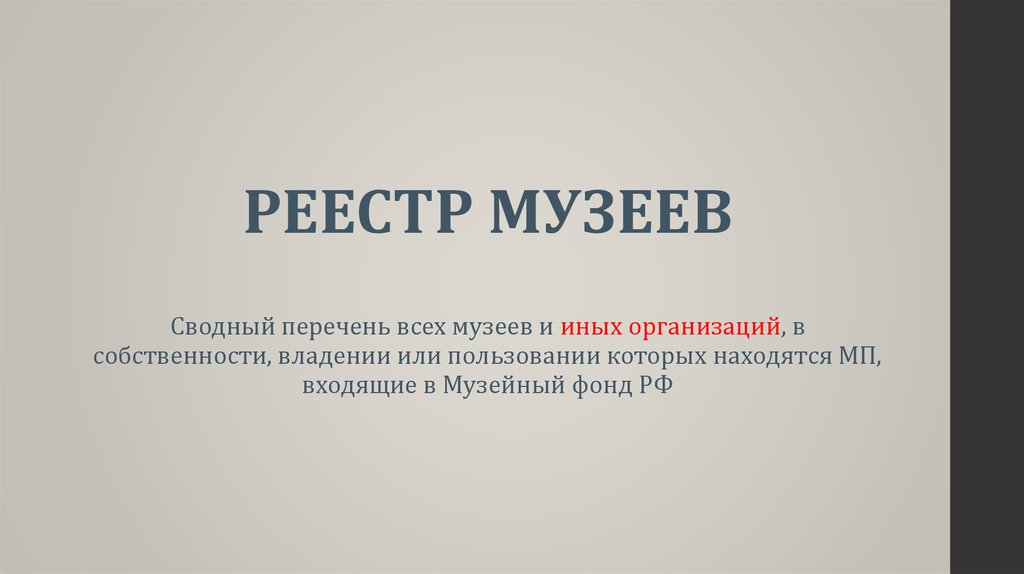 РЕЕСТР МУЗЕЕВСводный перечень всех музеев и иных организаций, в