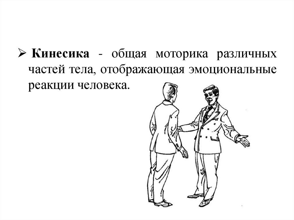 Кинесика - общая моторика различныхчастей тела, отображающая эмоциональные
