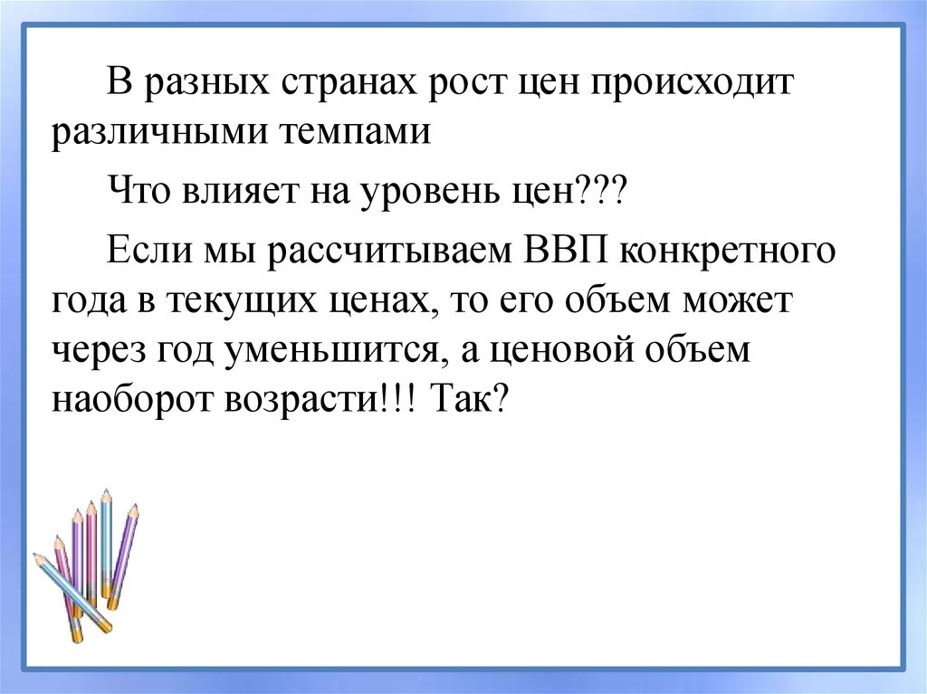 Дефлятор ВВП = ВВПн/ВВПр (индекс