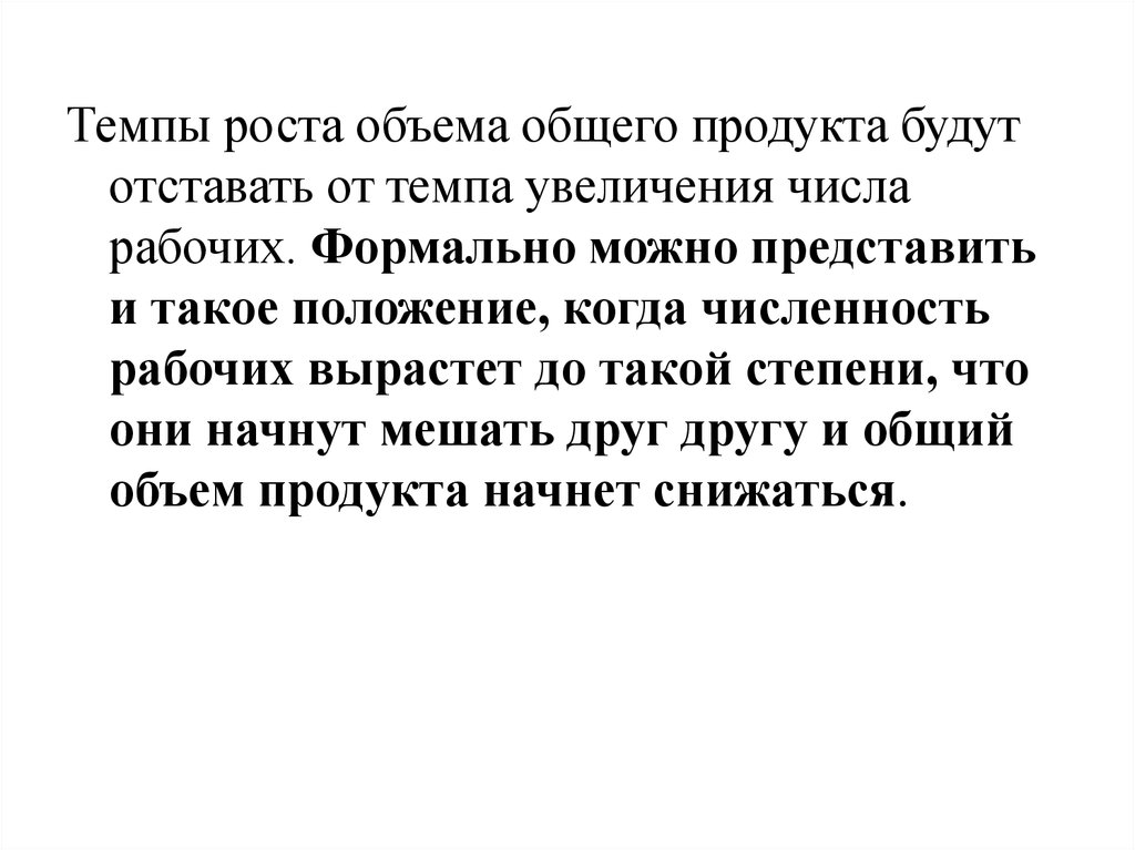 Темпы роста объема общего продукта будутотставать от темпа увеличения числа
