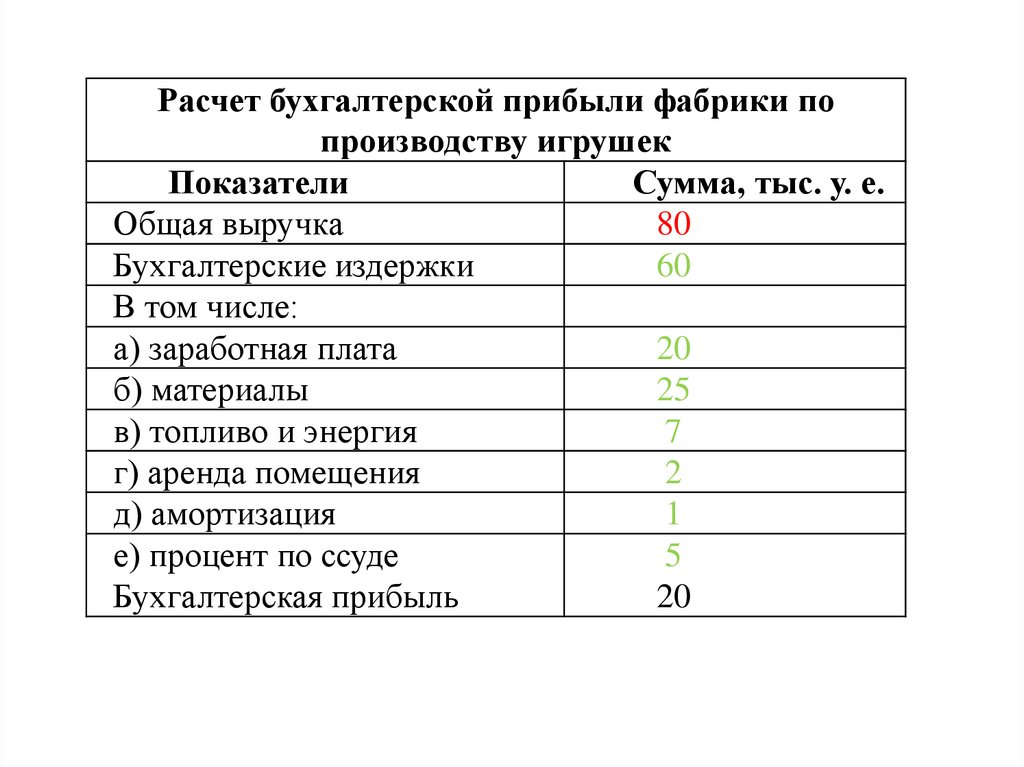 Расчет бухгалтерской прибыли фабрики попроизводству игрушек