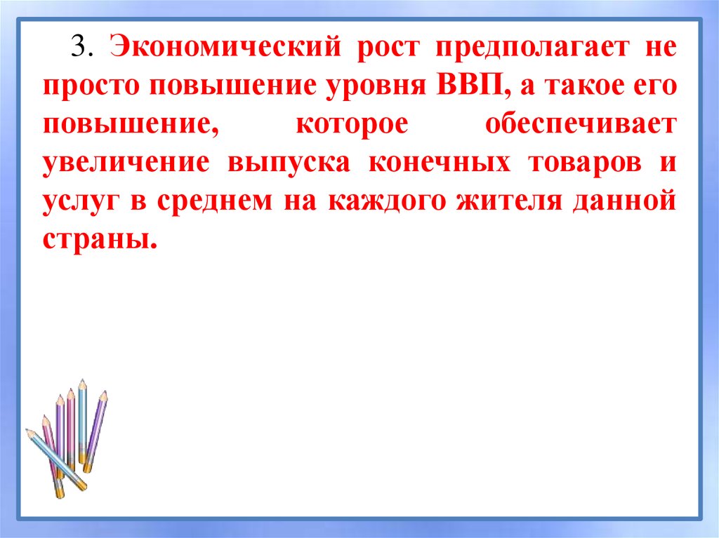 3. Экономический рост предполагает непросто повышение уровня ВВП, а такое его