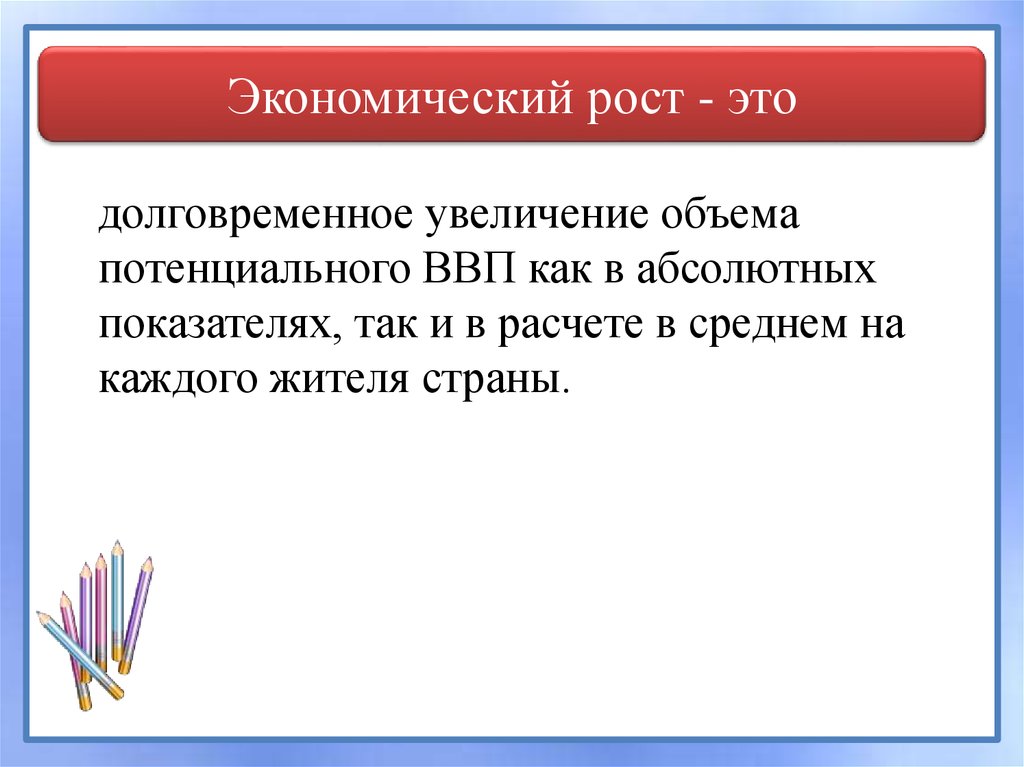 Экономический рост - этодолговременное увеличение объема