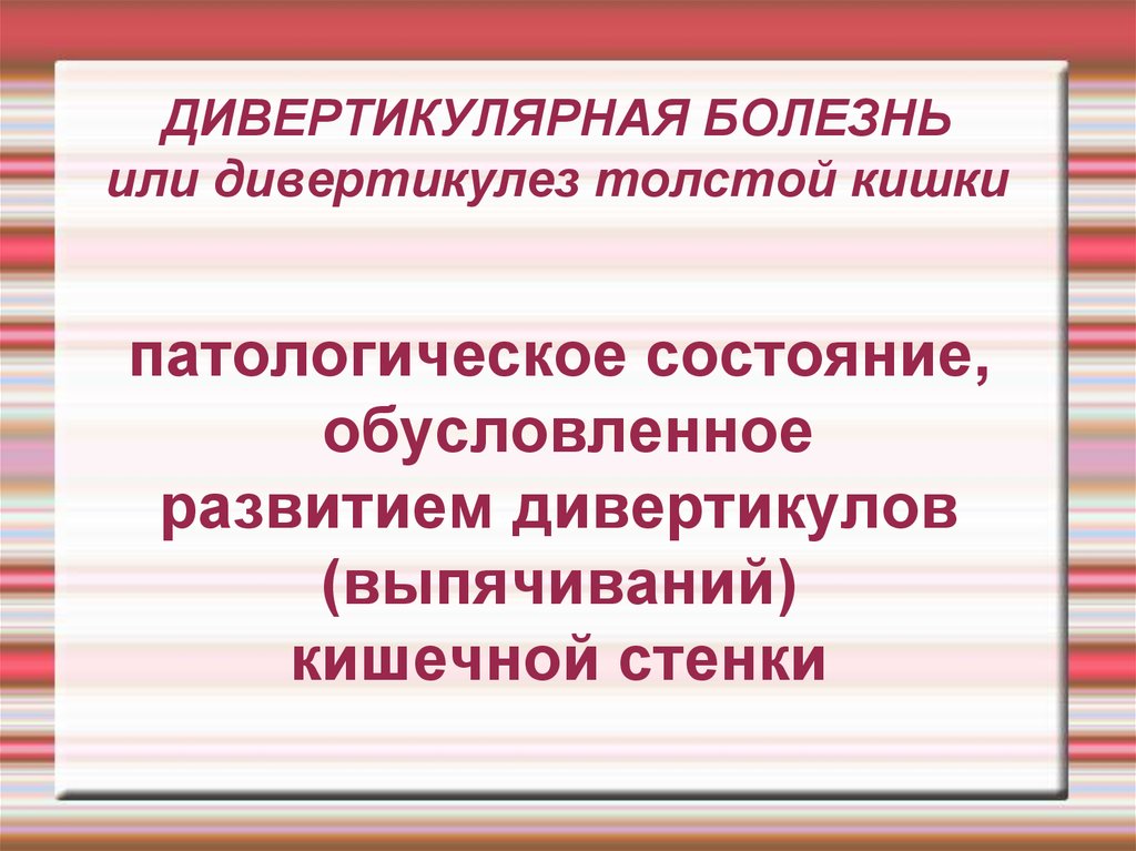 ДИВЕРТИКУЛЯРНАЯ БОЛЕЗНЬили дивертикулез толстой кишки