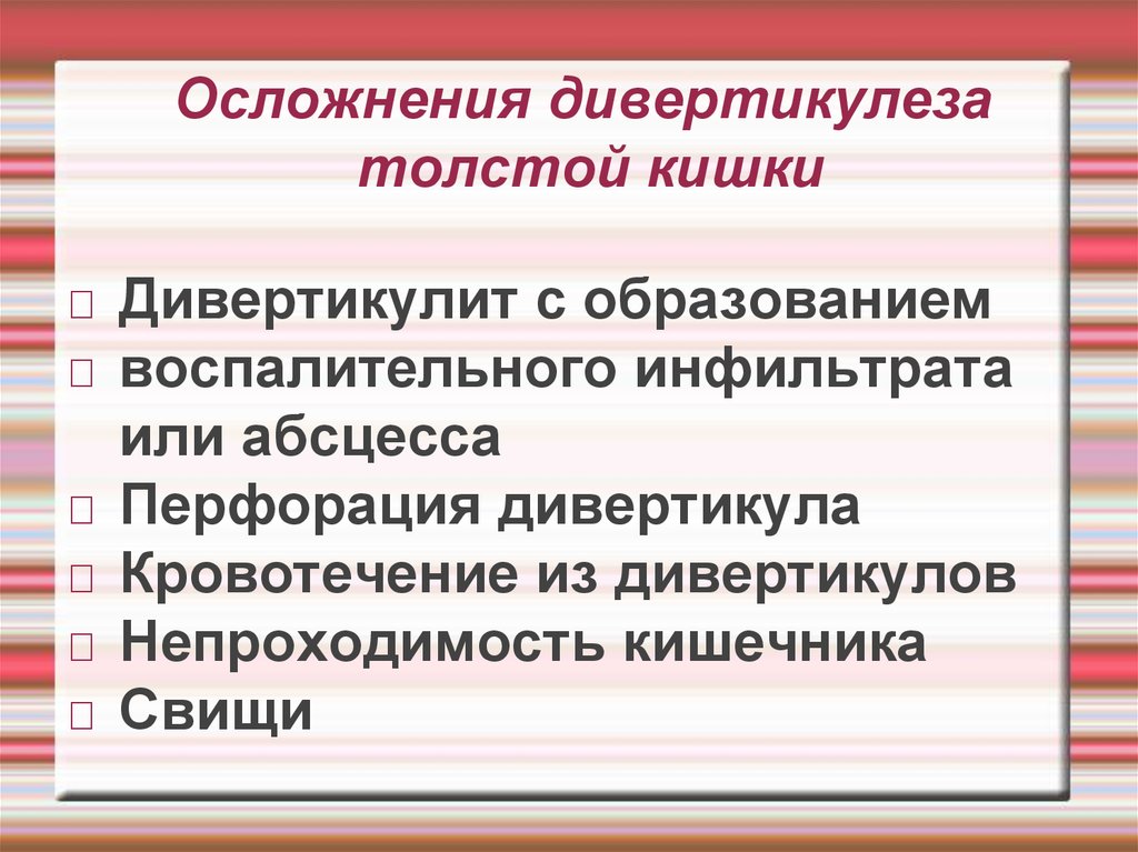 Осложнения дивертикулезатолстой кишки