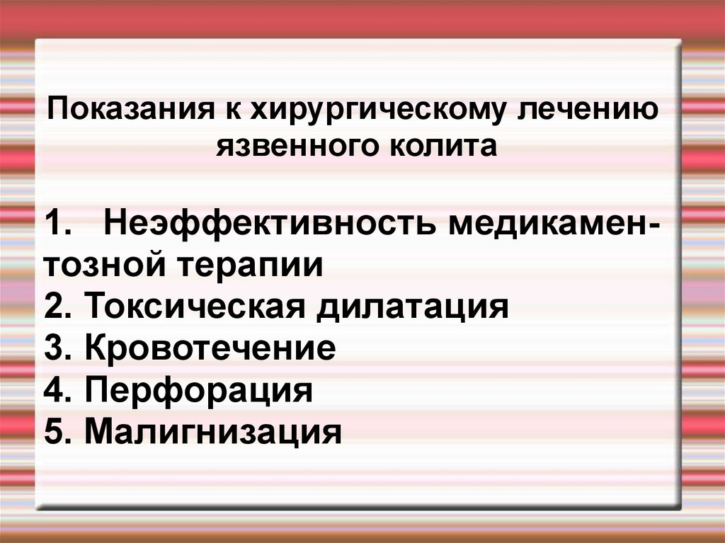 Показания к хирургическому лечениюязвенного колита