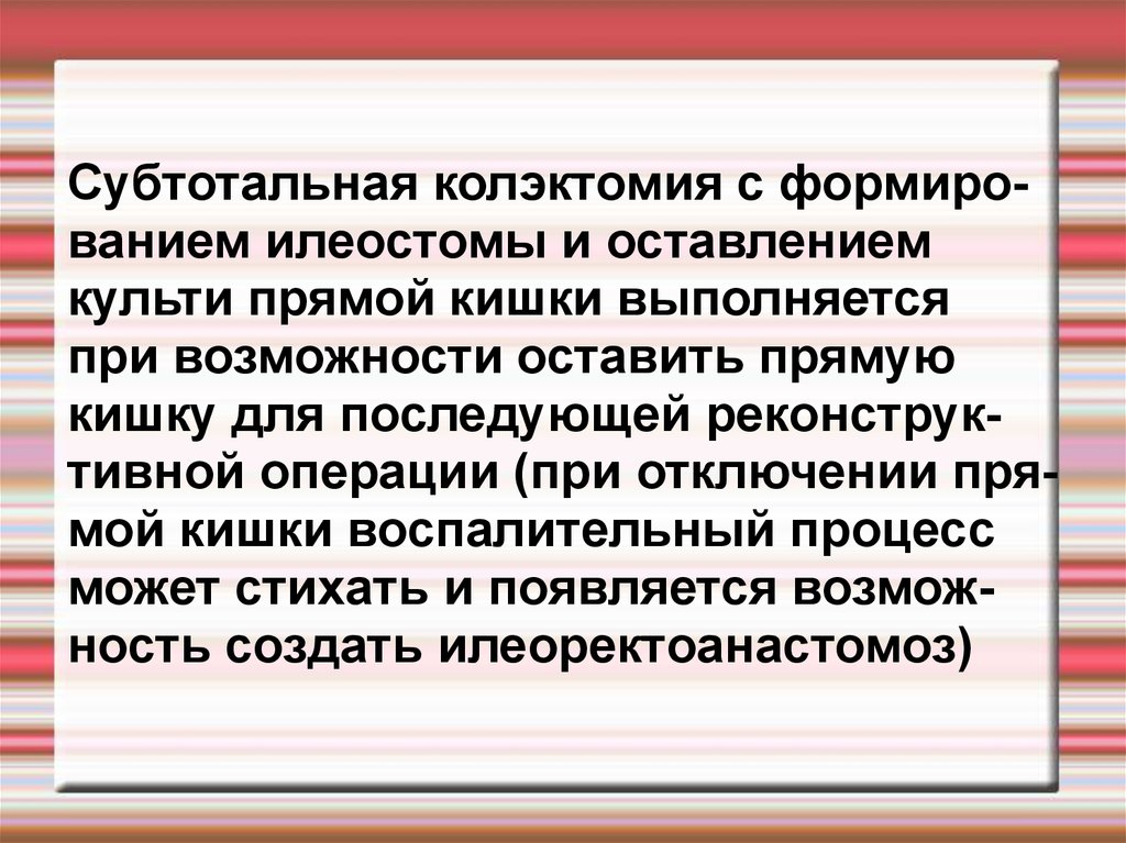 кишку для последующей реконструктивной операции (при отключении прямой кишки воспалительный процесс