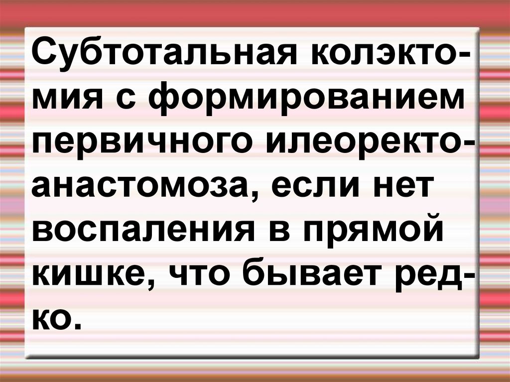 Субтотальная колэктомия с формированиемпервичного илеоректоанастомоза, если нет