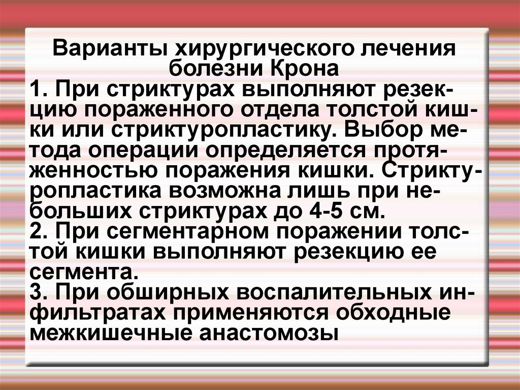 Варианты хирургического леченияболезни Крона