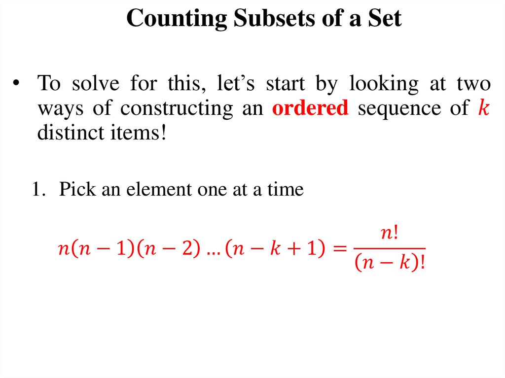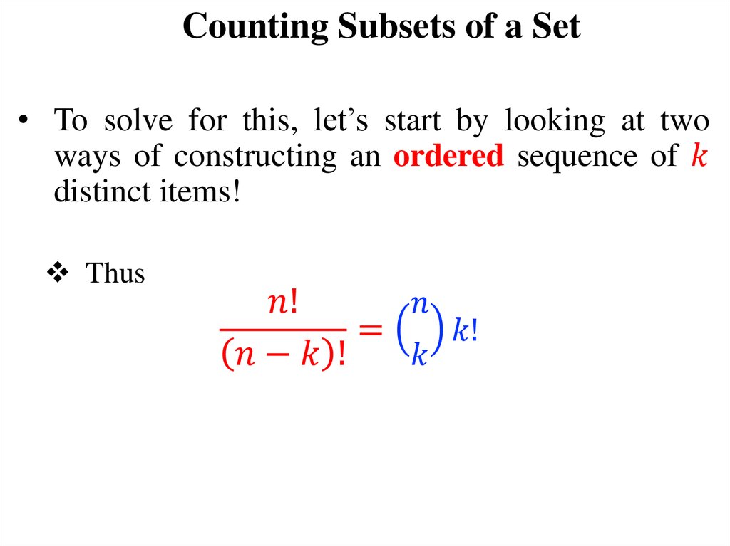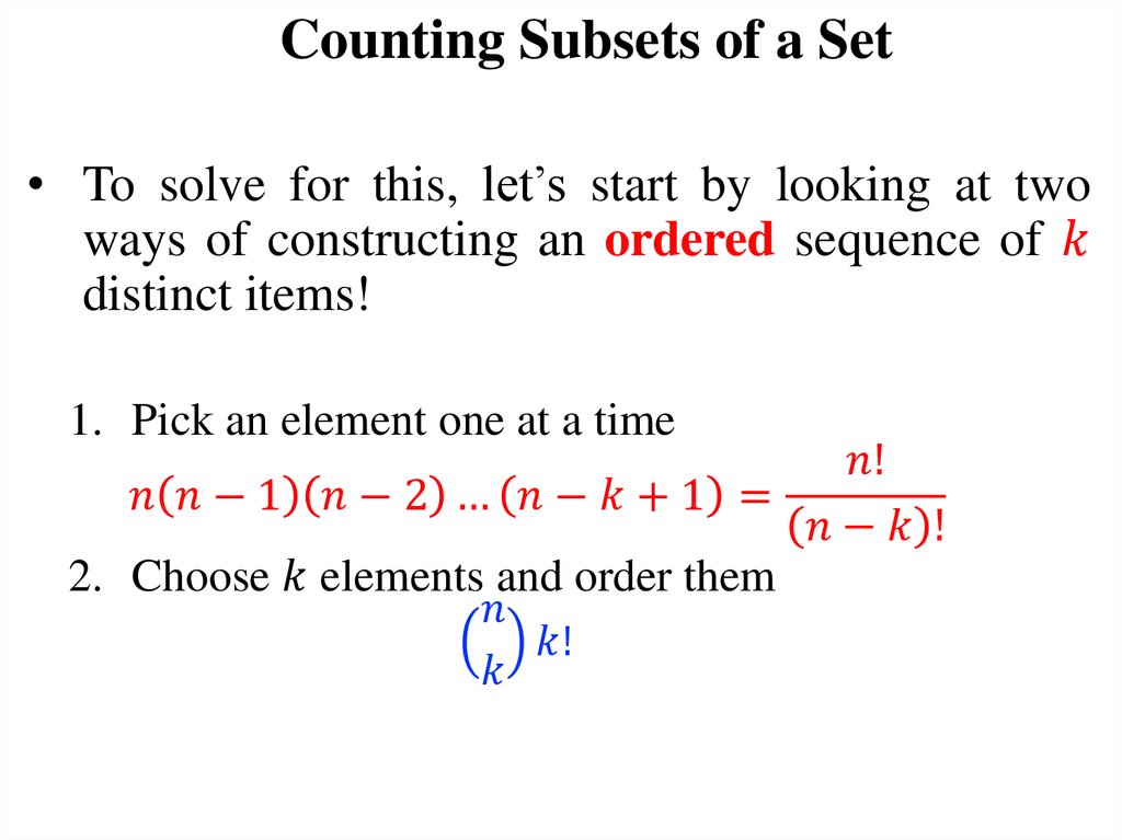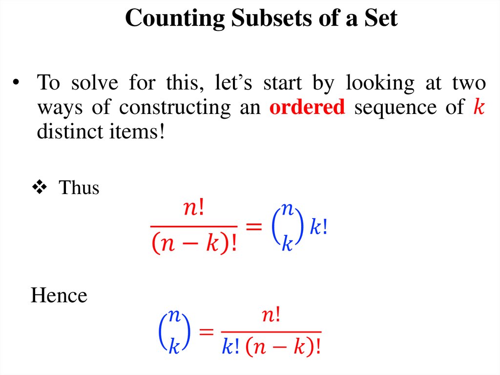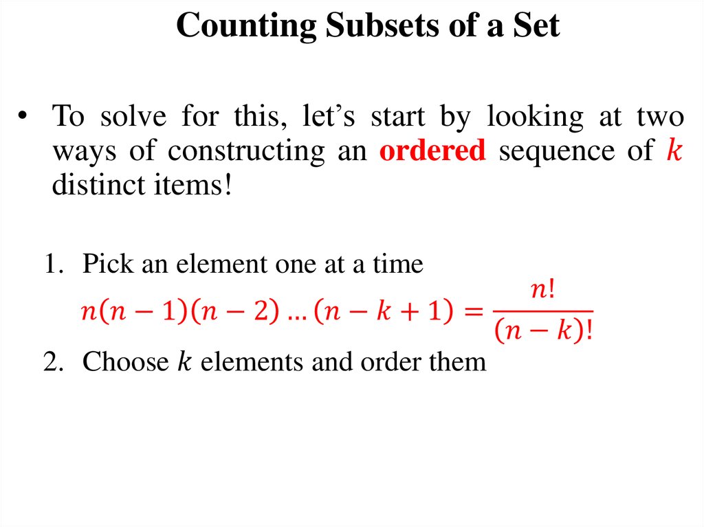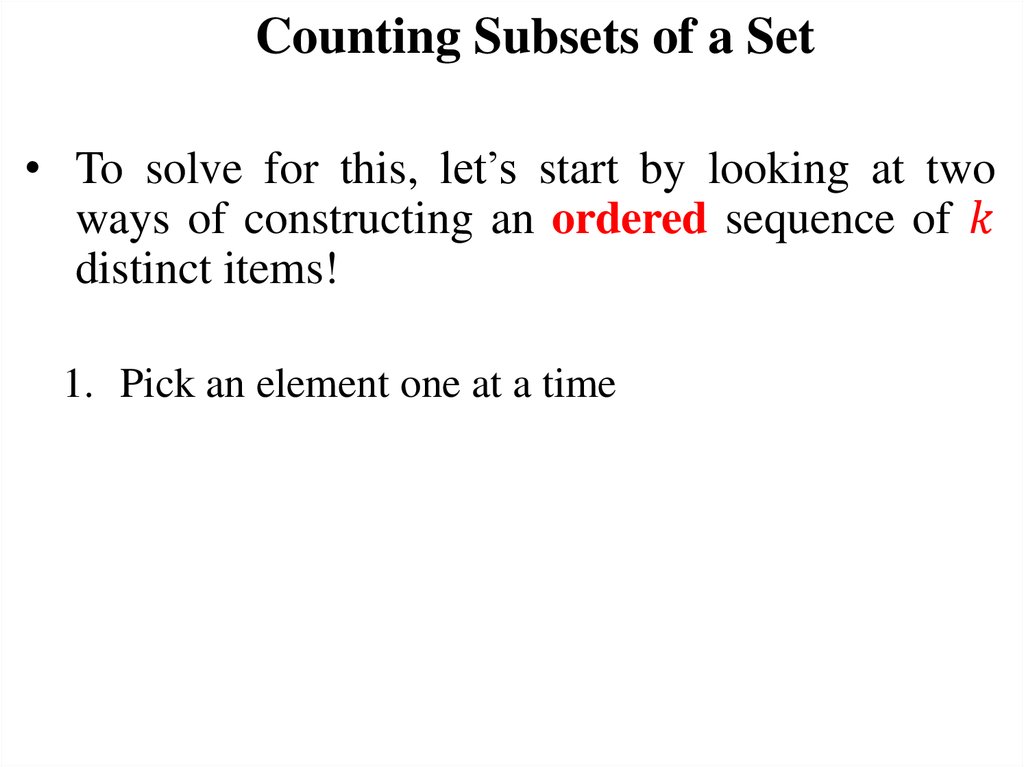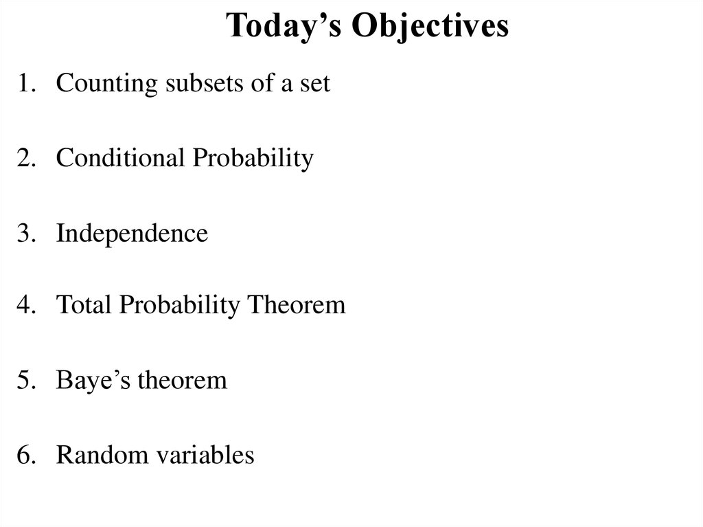 Today’s Objectives1. Counting subsets of a set
