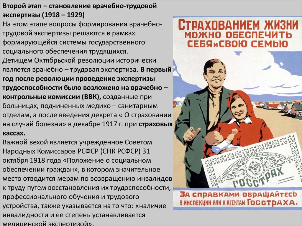 Первые сведения о применении понятияэкспертизы трудоспособности населения в