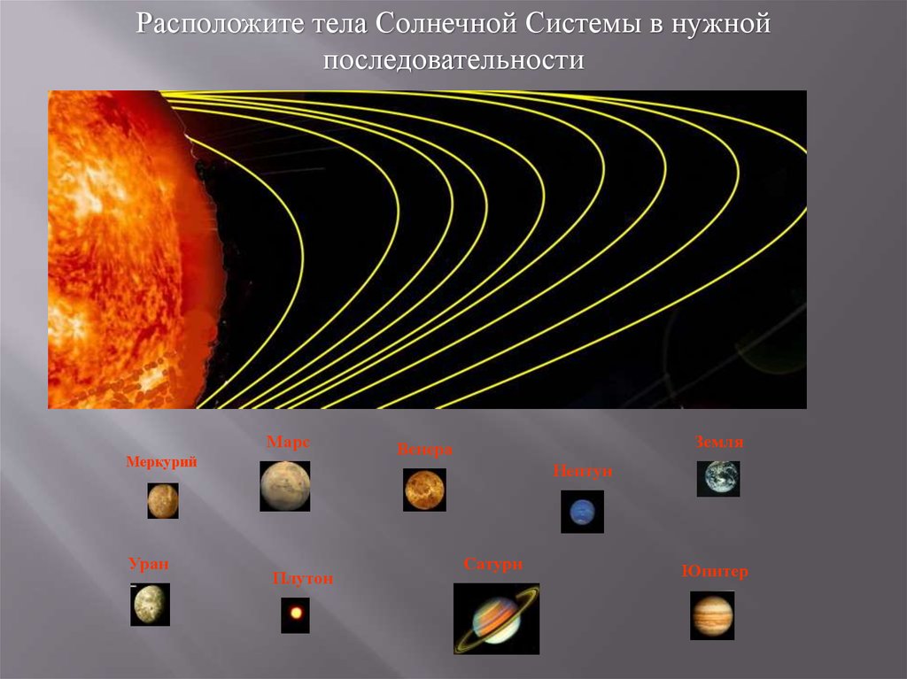 Расположите тела Солнечной Системы в нужнойпоследовательности