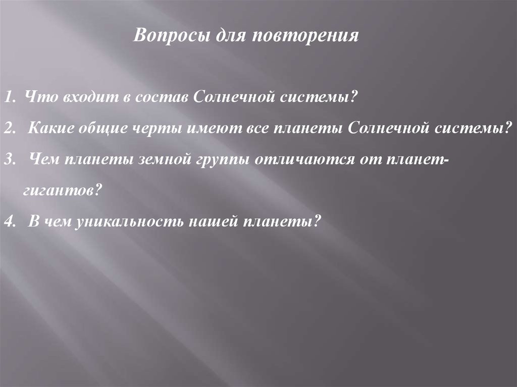 Вопросы для повторения1. Что входит в состав Солнечной системы?