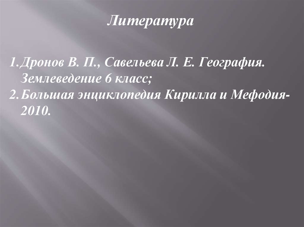 Литература1.Дронов В. П., Савельева Л. Е. География.