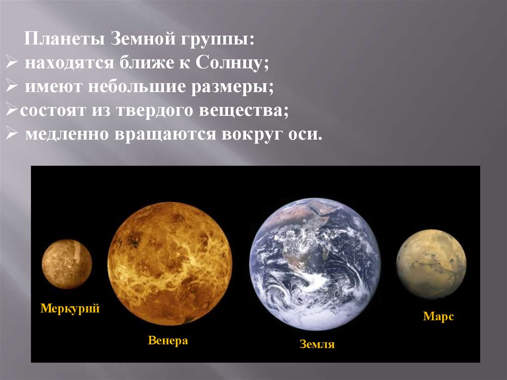 Планеты Земной группы:находятся ближе к Солнцу;