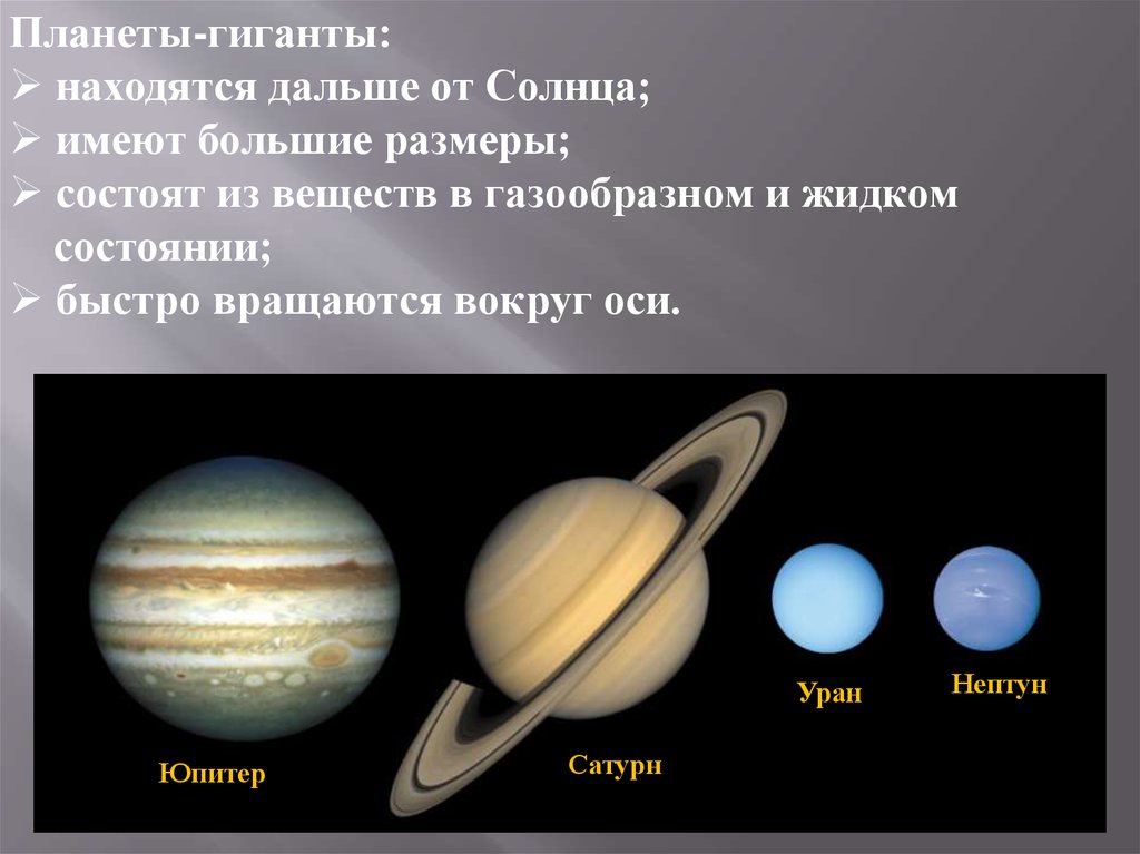 Планеты-гиганты:находятся дальше от Солнца;