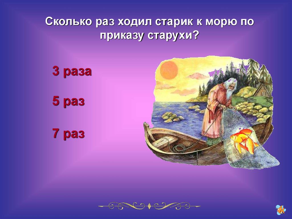 Сколько раз ходил старик к морю поприказу старухи?