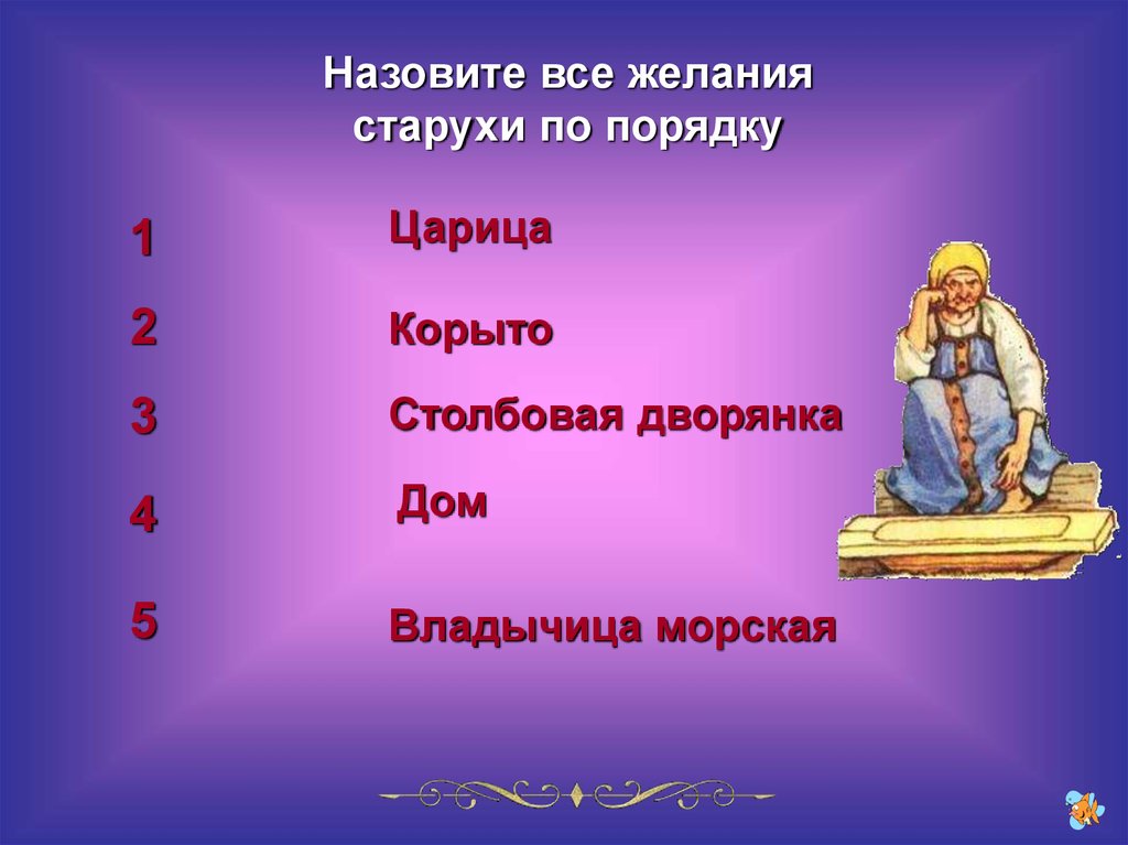 Назовите все желаниястарухи по порядку