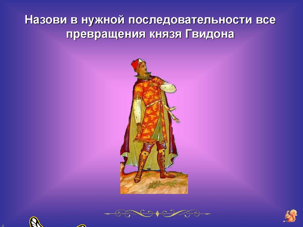 Назови в нужной последовательности всепревращения князя Гвидона